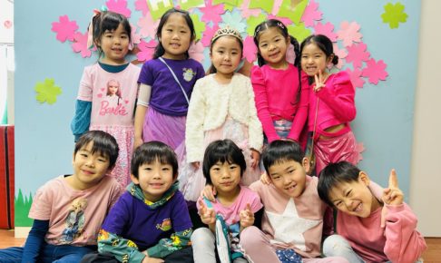 今日の年長さんクラスは3月生まれさんのお誕生日会をしました! お誕生日会のテーマはCherry Blossom! 皆でピンクのお洋服を着て、手作りカップケーキを作ってお祝いしましたよ♪ ケーキ作りはすこーし手がベタベタに…