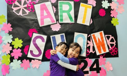 今日のFun Fun FridayはArt Show!! 今回は後期の作品を展示しました! こちらは年少さんの作品です。 そして、こちらは2歳児クラスと3歳児クラスの作品です。 年長さんたちには、最後の展覧会になりました…