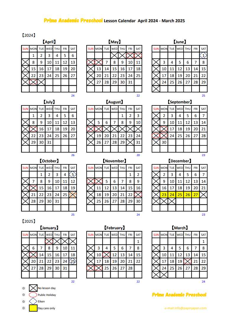 2024年度PAPレッスンカレンダー(PDF)