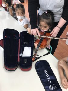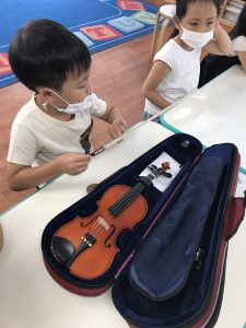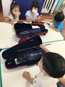 At Prime Academic Preschool the older class practice the violin for music class. We just started our practice with our violin and is now practicing to take out the violin, hold it correctly, and putting away correctly.