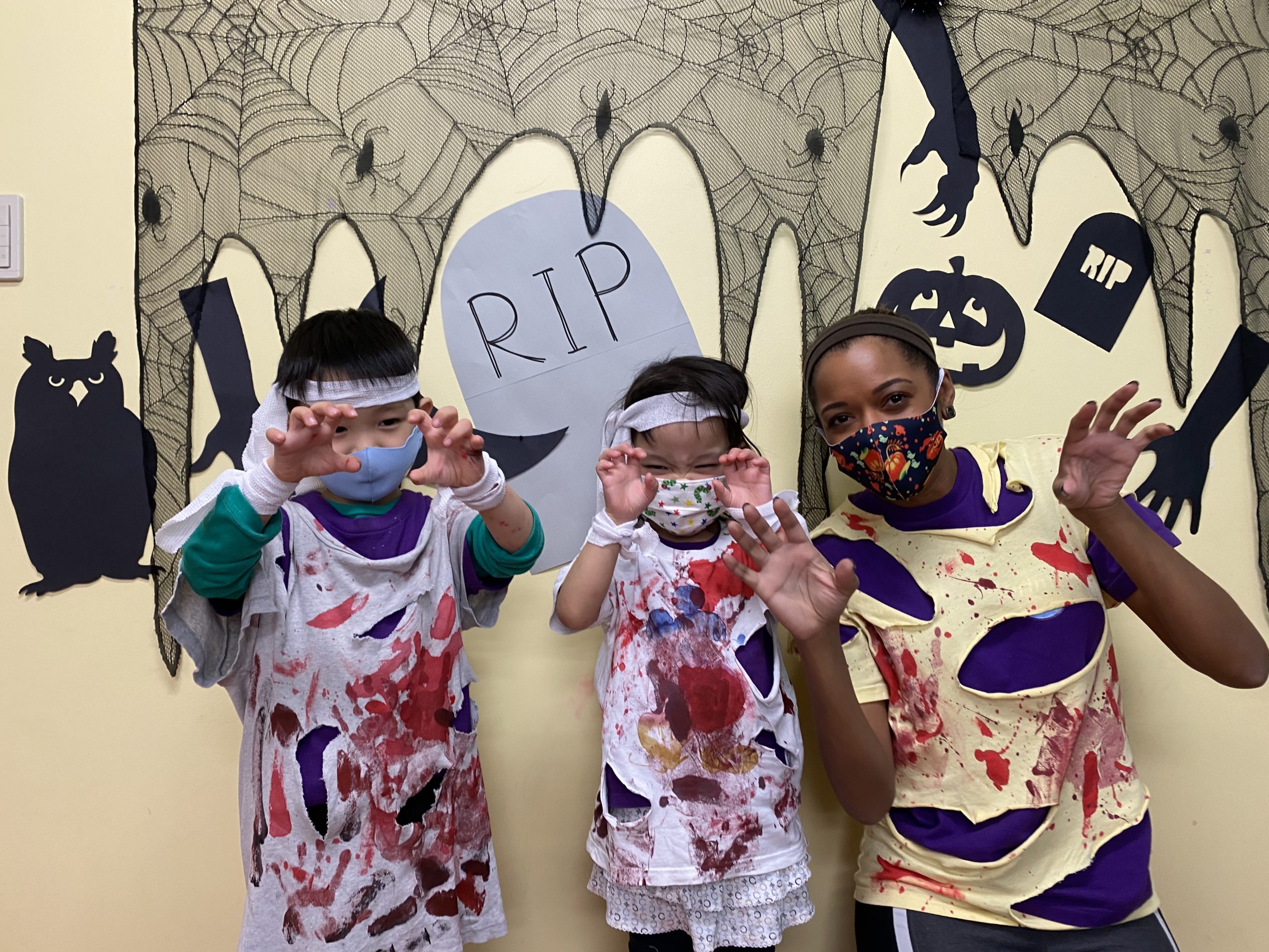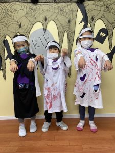 For today’s fun fun Friday, we had Zombie Friday! The older kids brought in clothes that they didn’t need anymore and ripped it up and added some red color to make it look spooky!