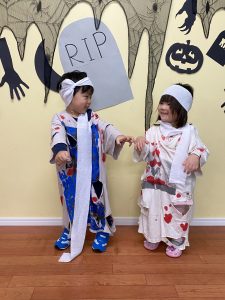 For today’s fun fun Friday, we had Zombie Friday! The older kids brought in clothes that they didn’t need anymore and ripped it up and added some red color to make it look spooky!