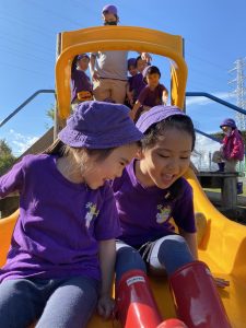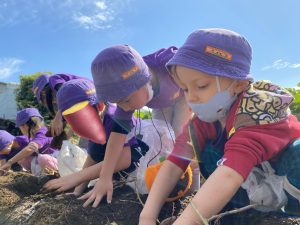 We went sweet potato picking! The weather was beautiful and children enjoyed digging for sweet potatoes. They also enjoyed having a picnic at a nearby park and playing there.