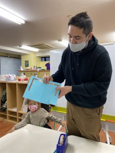 最終日の今日は紙と豆電球を使い光るカードを作りました。