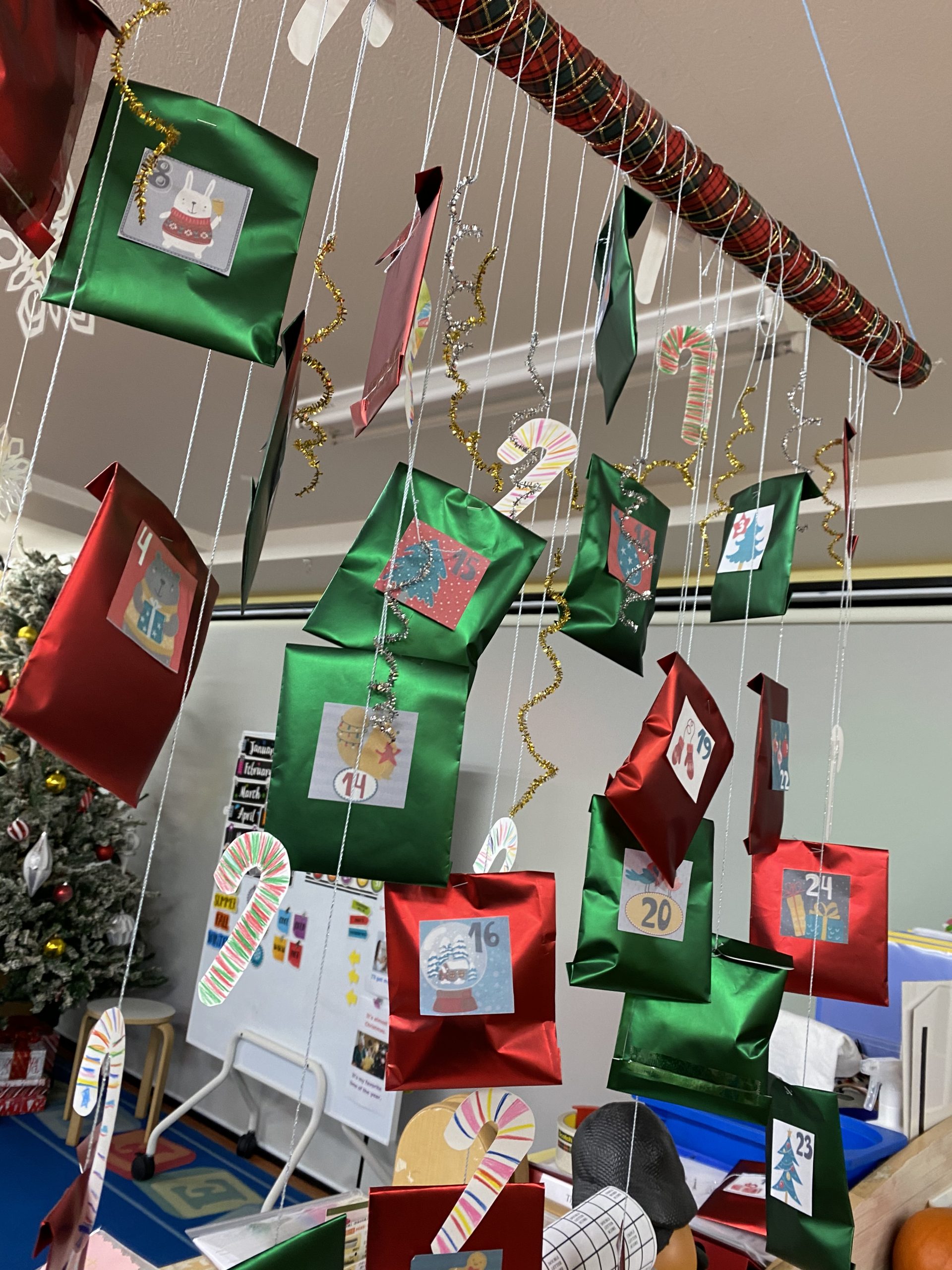 December means Christmas is almost here!! Today the children made their very own advent calendar as a class. They made the special bag where the treat goes in and made decorations to go with it. Using this advent calendar we will be counting down the days till Christmas!