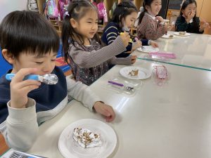 Our last class for this year !! We had super fun celebrating Christmas together! Everyone enjoyed eating Bush de Noel together listening to Christmas songs.