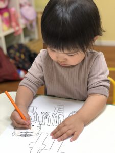 Today they learned letter T! T, T, Tiger! Tracing, Coloring, Making, They were so concentrate!