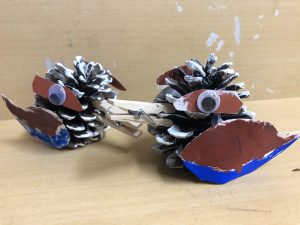 Guess what this is?? The famous Kookaburra! We used pine cones and turned them into a famous bird in Australia that laughs/ cries like a monkey. Can you imagine a bird that cried like that? You can find how they sound on you tube.