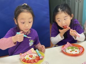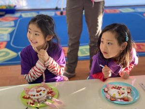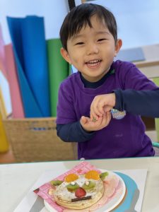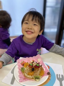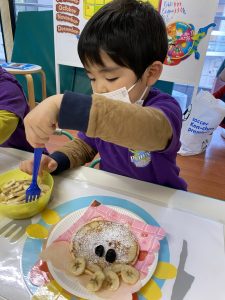パンケーキにフルーツを使いPancake Animalsを作りました!それぞれ個性溢れるパンケーキができましたね。