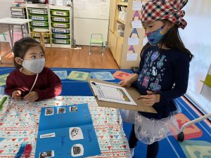 ウェィターとお客さんに別れてロールプレイを行いました。