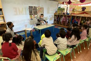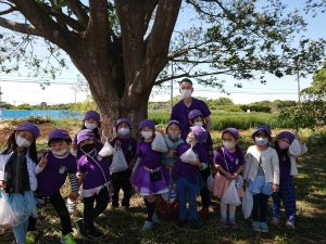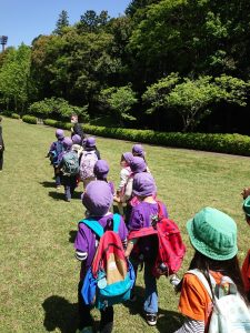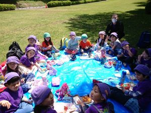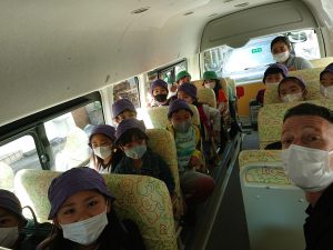 楽しみにしていたイチゴ狩りへスクールバスで出発!