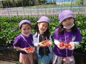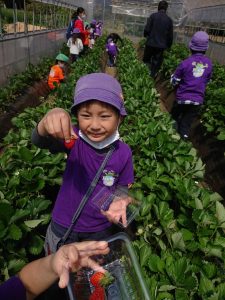 真っ赤に熟れたイチゴを採ってみな喜んでいました。