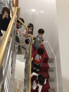 そして本日は雨が降っていた為、建物の中の階段からの避難訓練を行いました。