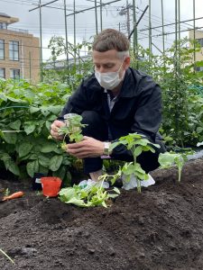 畑に着き野菜の植え方をスティーブン先生に教わり自分たちで植えました!