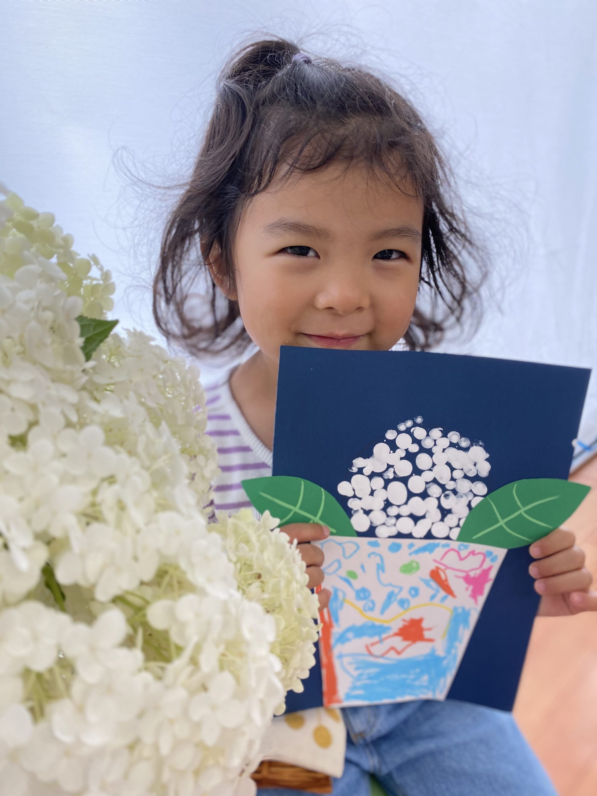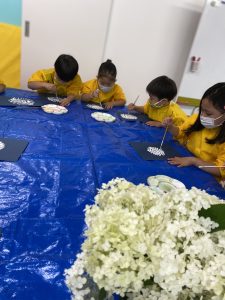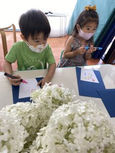 Aquarius class のお友達から白のアジサイ(Hydragea)を頂きました。今日はそのアジサイの絵を描きました。
