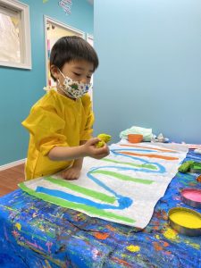 今日は和紙に筆のかすれが出るようにタオルを使った筆や