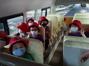 スクールバスの中では車窓から見えるものを皆で言い合ったり、