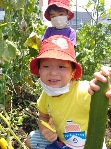 はさみで上手に野菜を採ったよ!