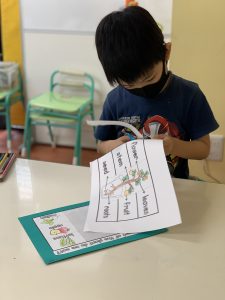 私たちが普段食べている野菜は野菜のどの部分を食べているのか話し合い1つひとつの野菜の特徴と栄養素を調べParts of the plant bookを作りました。