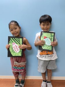 この羽は3面になっており、皆3枚異なる模様を描きました