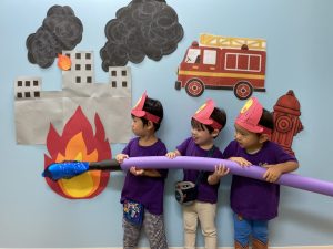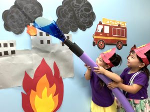防災とはどういうことかなのか子ども達と一緒に考え実際の災害時に必要な事を話し合い、災害時に安全に避難できるように避難訓練を行いしました。
