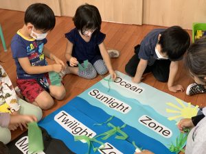 太陽の光が届く水深200mまでのSunlight Zoneでは海の生物の90%が生息しています。それぞれの層にはどんな生物が存在しているのかを学びました。