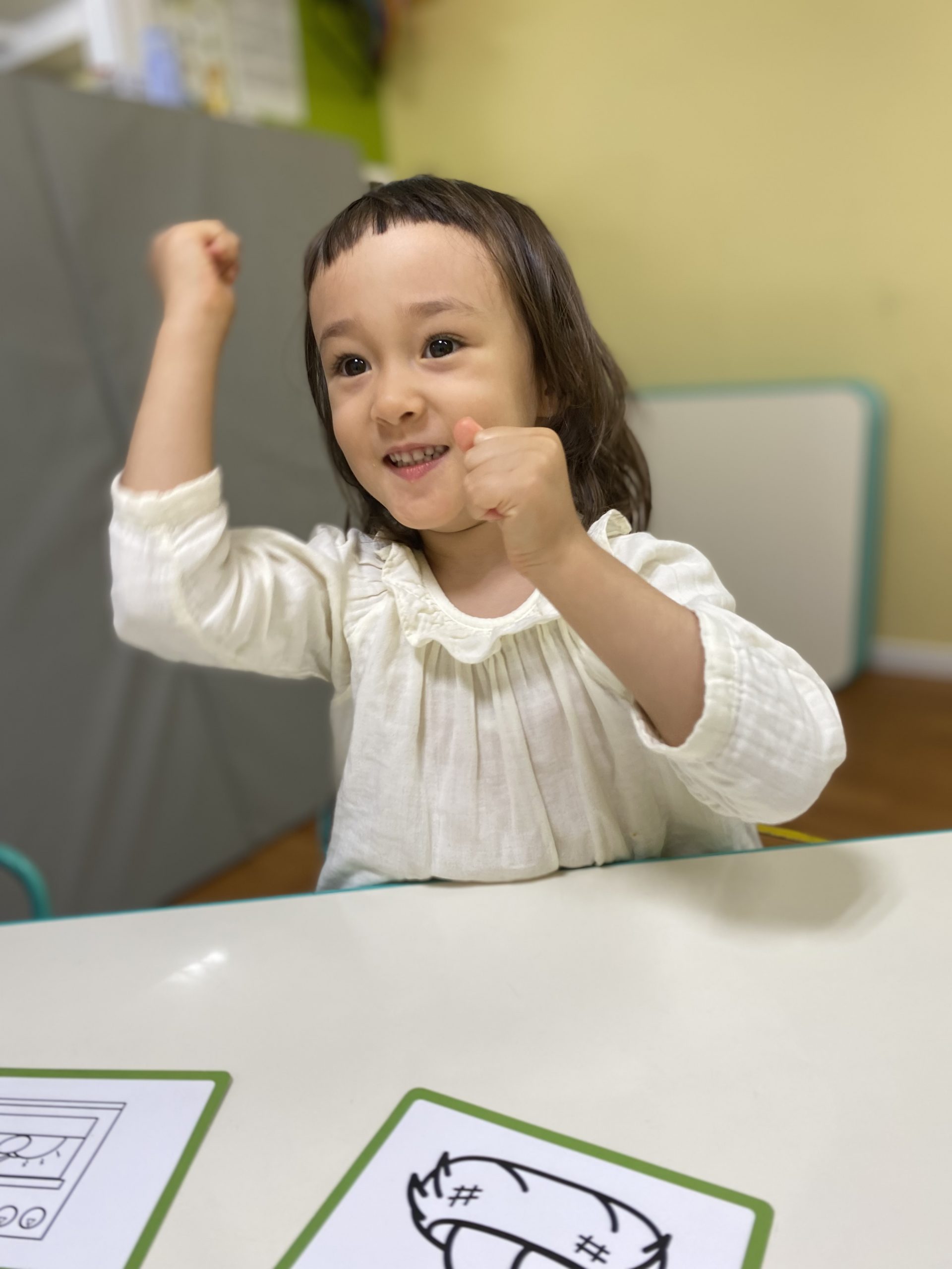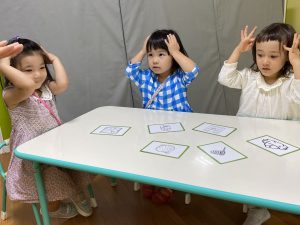 またさまざまな遊びの様子を含んだワークブックで文字を書いたり色を塗ったり楽しいゲームを取り入れながら子ども達がフォニックスの音に慣れることを心がけています!
