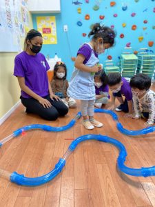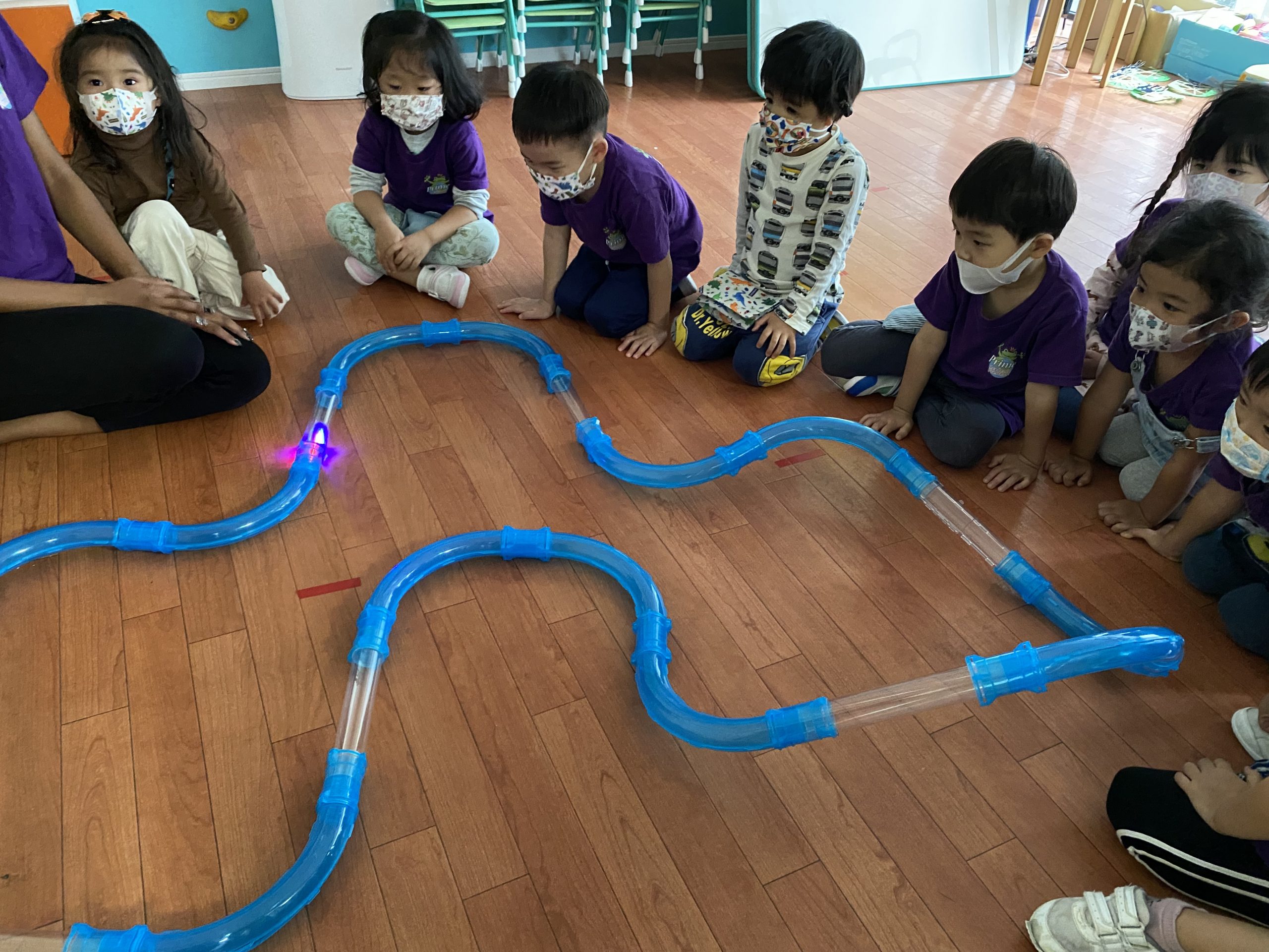 その中を前後に動く猛スピードの光る車に大興奮でした!