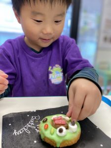 モンスタードーナツを好きなトッピングを選びデコレーションし楽しみました。
