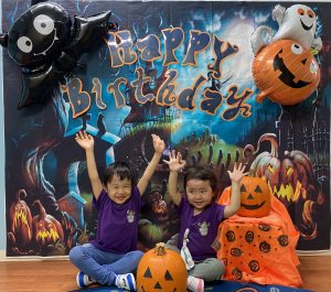 今日のFun Fun Fridayは10月のお友達のお誕生日会です。10月のテーマはMonster!