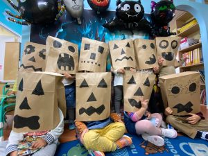 年長さんたちです。女の子はかわいらしいモンスターになりました!