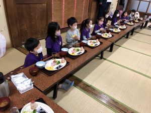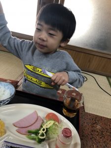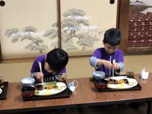パジャマ撮影会の後はまたお布団の片づけや食事の準備を手伝い朝食が整いました!