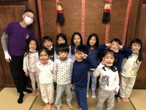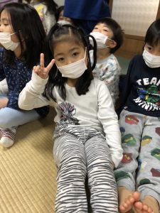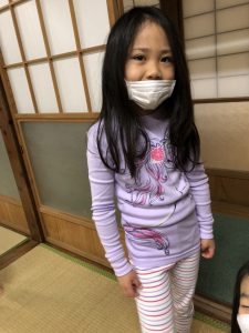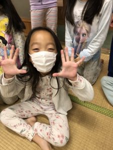 数名I miss mommyという声が聞こえましたがお友達と一緒にお泊りできる事のほうが楽しかったようです。