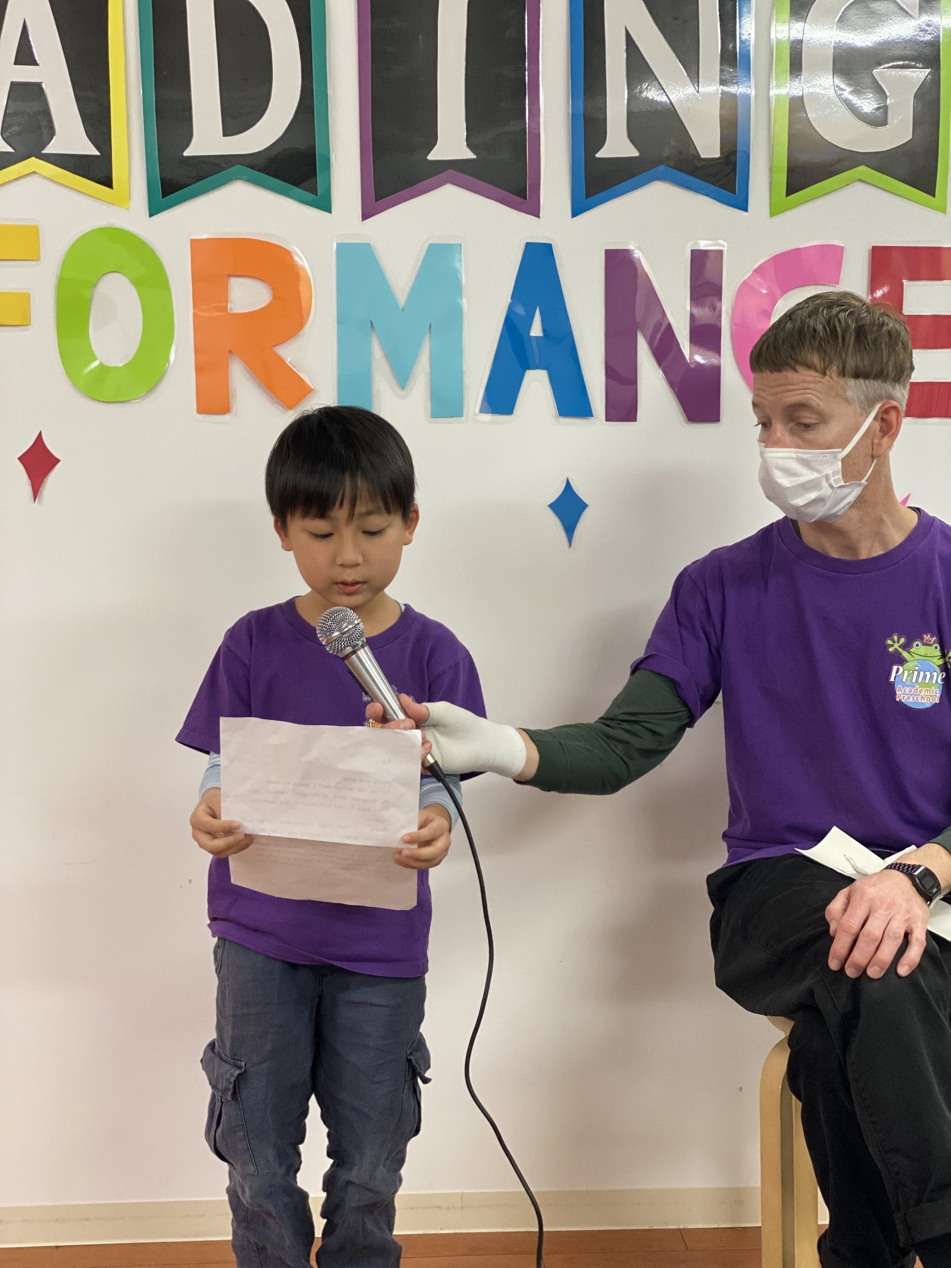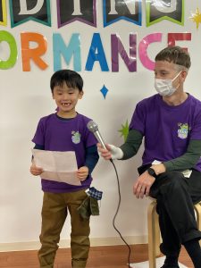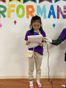 マイクの前に立つまでは緊張でなかなか笑顔にならない子もいざ始まると堂々と発表ができていました!