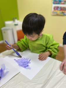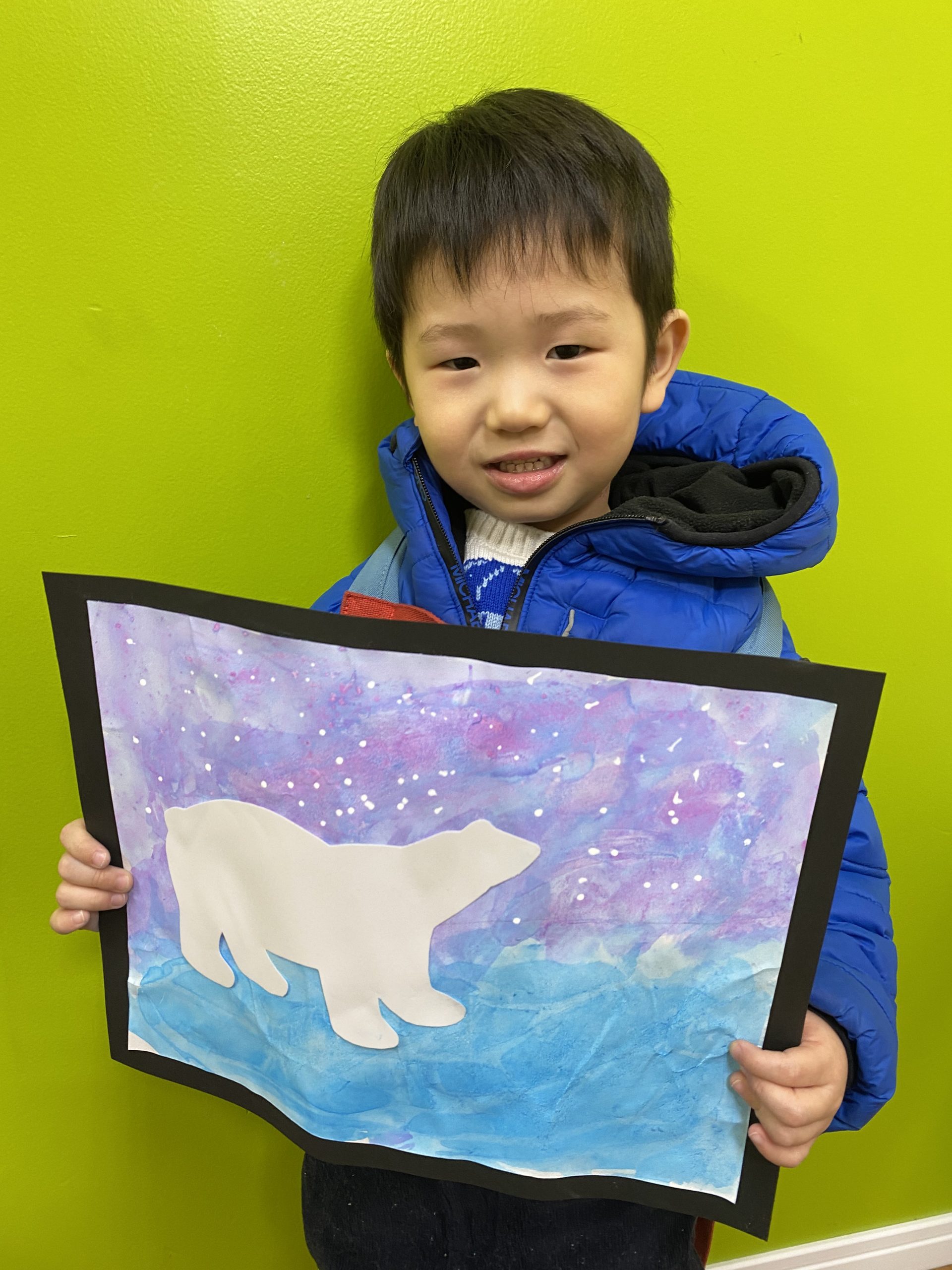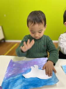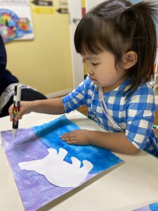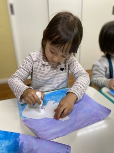 Next, we painted the bottom blue and put a piece of Saran Wrap to make a nice ice effect.