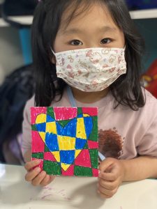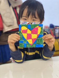ハートの中は2色のカラーペンで塗り、外側は異なる2色のペンで塗るという作品に挑戦しました!