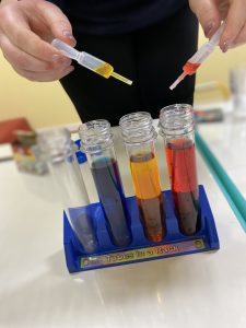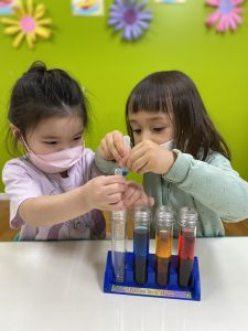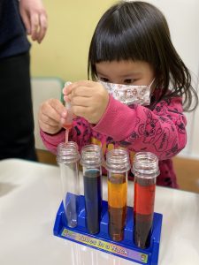 On Thursdays, we learn science! Today we mixed different colors together in our test tubes to see what colors it would make!