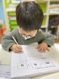 At the beginning of the year, we didn’t even know how to hold a pencil, but now we are practicing writing the letters of the alphabet free hand!