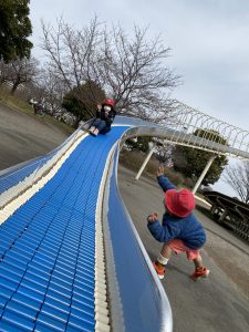 There was even a huge slide! We could slide down very fast!
