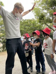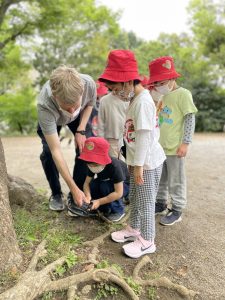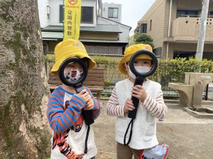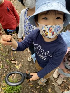 雨の予報でしたが、雨は降らずに、園外でも探知機を使った実験ができました!