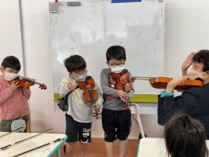 先週までキーボードを使ったレッスンでしたが、今週からバイオリンのレッスンも始まりました!