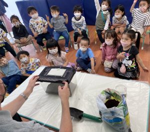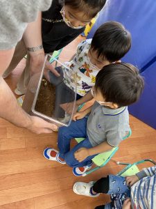 まずは、egg、larva、pupa、adultと卵から成虫になるまでの成長過程について学びました。