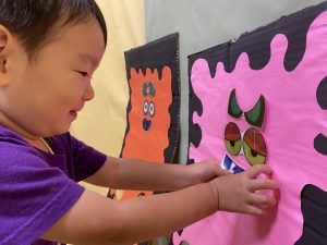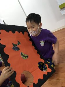今日のFun Fun Fridayは福笑いに似たゲームで面白い顔を作って楽しみました。