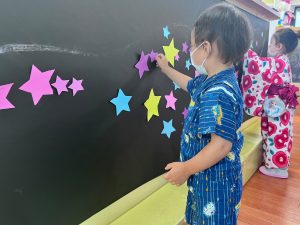 またたくさんの星を切り、天の川を全クラス合同で作成しました。