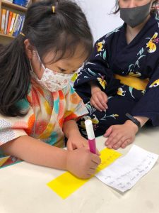 綺麗にかく練習をしてから短冊に願いを書きました。