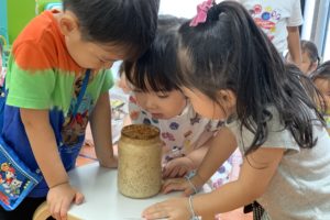 Plutoクラスは手先を使い細かい作業も自分たちで行います。もちろん先生達もお手伝いをしますが