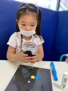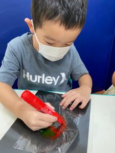 星に色付けをするため好きな色をラップに塗っていきました