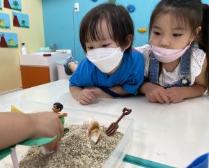 本日は、日本の美しいビーチを写真やビデオで見た後、各クラスごとにビーチの模型を作りました。