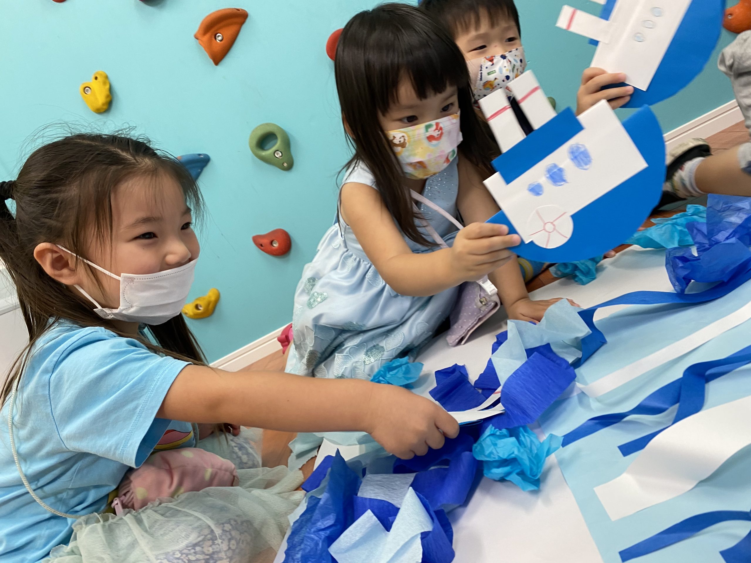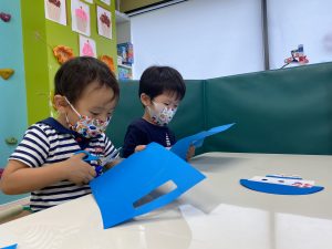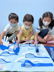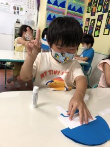 年中さんの生徒たちは切るのも、貼るのもお手のものです!!