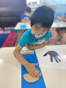 Today the Galaxy class started a new project in art class. We are continuing with August’s theme of sensory play and texture.